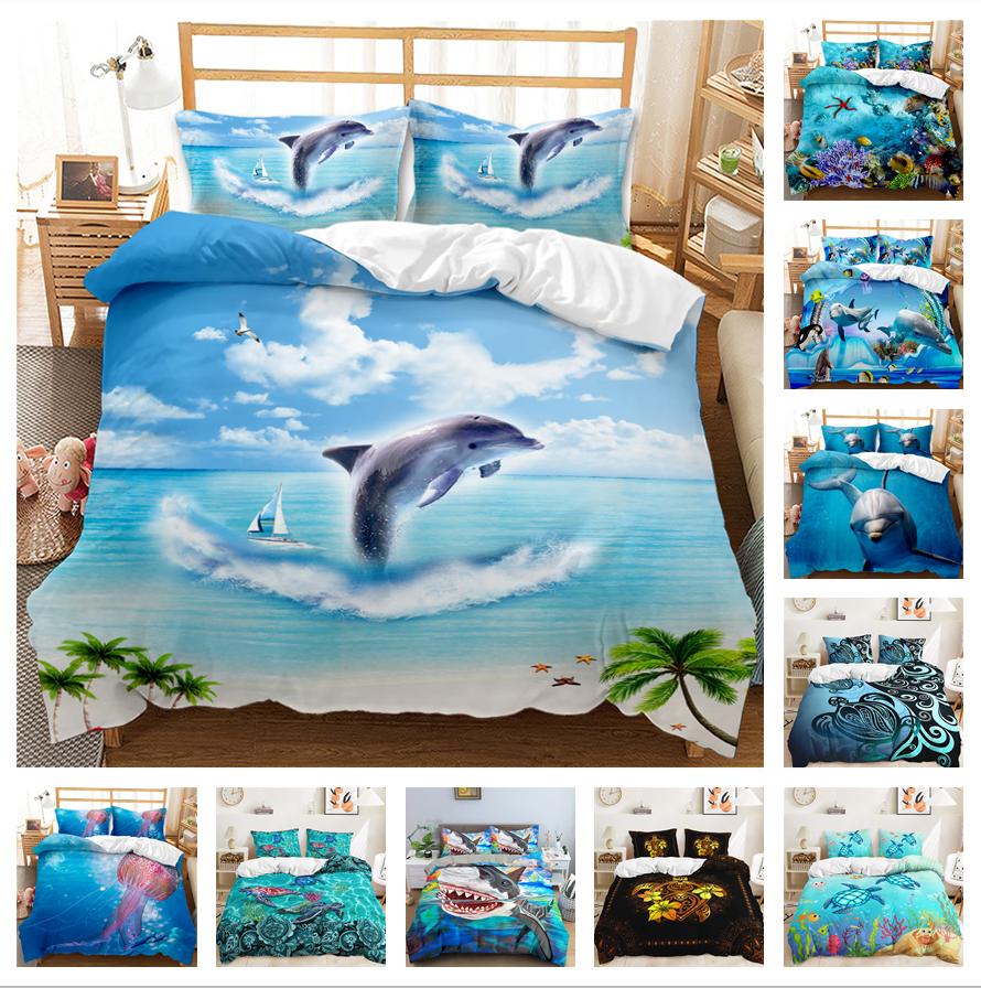 3D комплект постельного белья с изображением океанских животных, наволочка и пододеяльник с подводным миром, 2/3 шт., AU135 * 200, полноразмерное украшение для дома