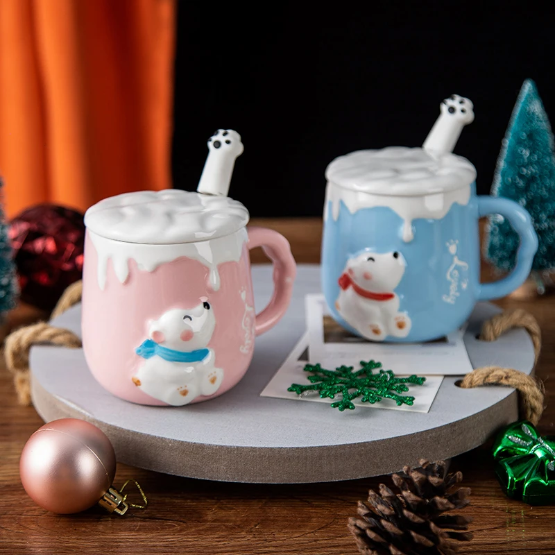 3D милая мультяшная кружка, тисненый медведь, ручная роспись, противоскользящая глазурованная крышка, ложка, чашка для кофе, молока, чая, завт...