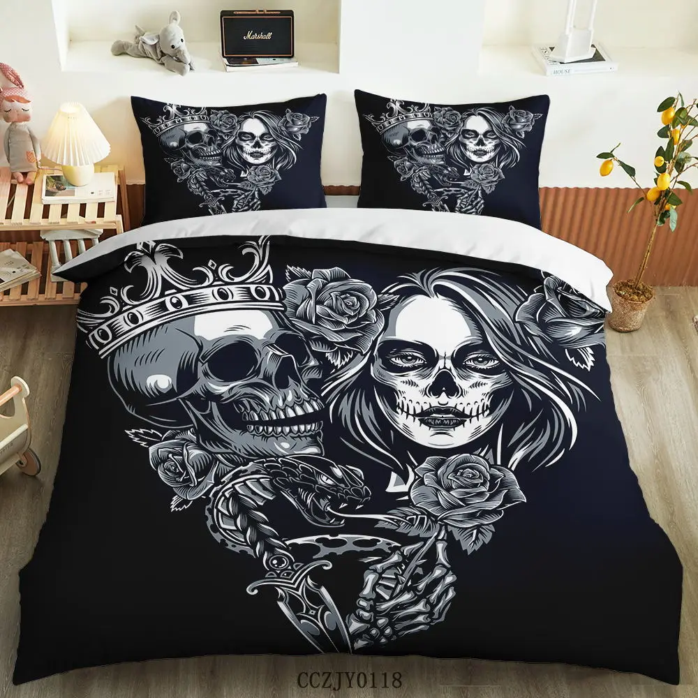3D мультфильм современный в стиле «панк» с изображением сахарного Черепа скелета украшения наволочка пододеяльник Постельное белье 2/3 шт. ...