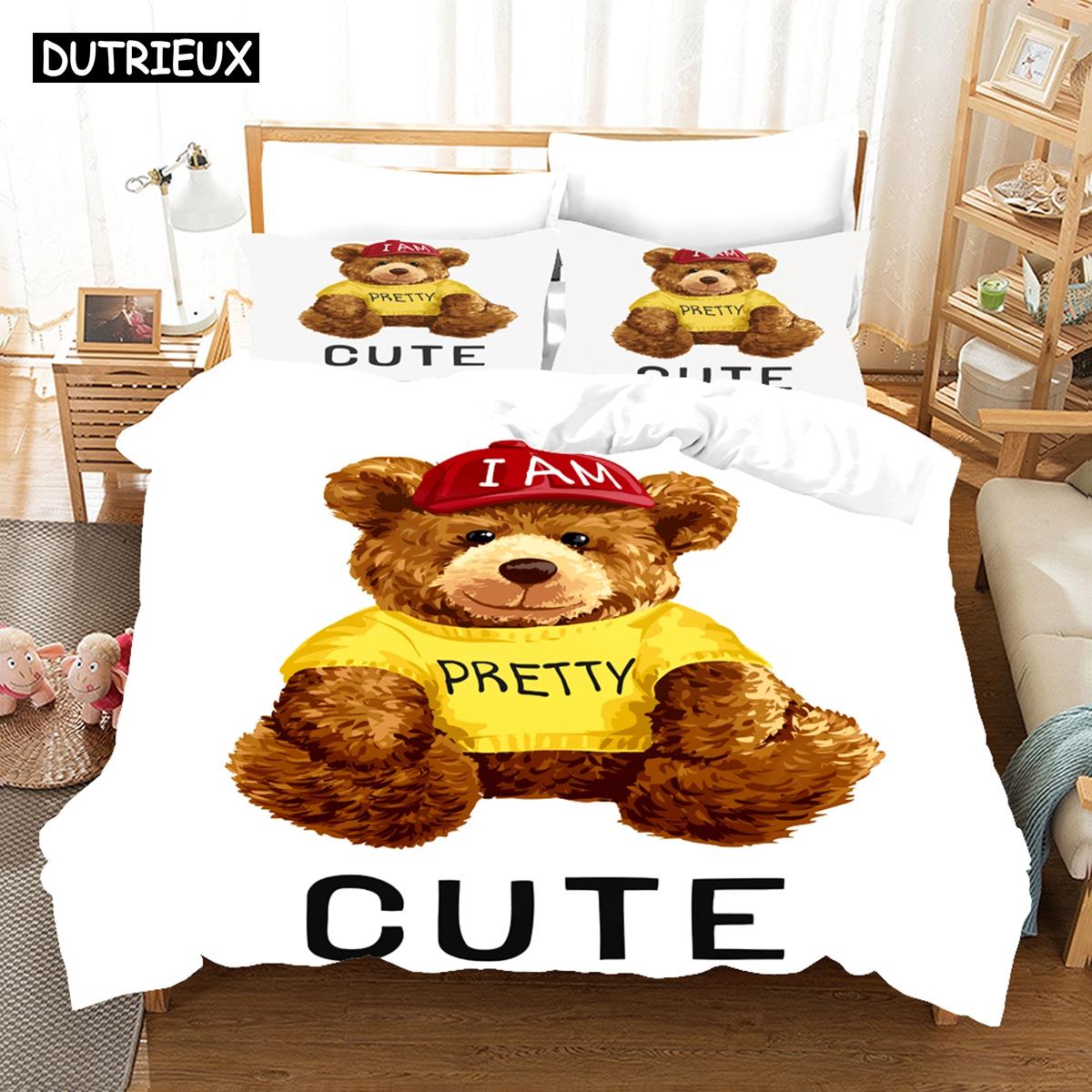 3D мультяшный милый плюшевый мишка пододеяльник комплект с наволочкой простыня двуспальная кровать двуспальная кровать постельное белье EU single(135x200cm)