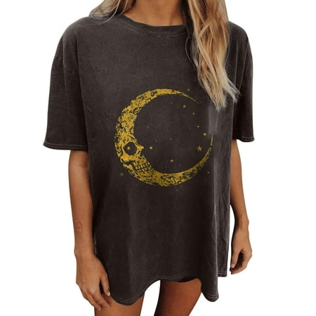 Womens Tops Corset Tops for Women Women s Features Leisure Short Sleeve Summer Retro Print Loose Fit Short Sleeve Men s and Women s Blouse White Long Sleeve Shirts for Women Gray S