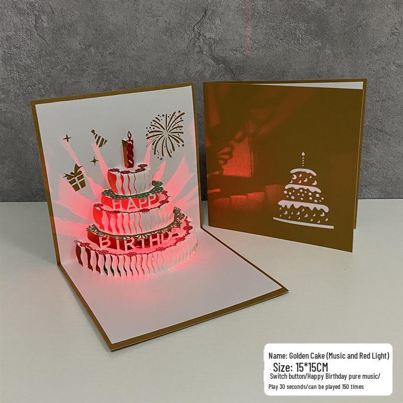3D-открытка на день рождения с музыкой для торта и фотопечатью