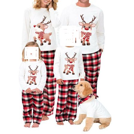 Christmas Family Matching Clothes Outfits for Couples Dog Owner Long Sleeve T-Shirt + Casual Trouser Pant Set Xmas Party