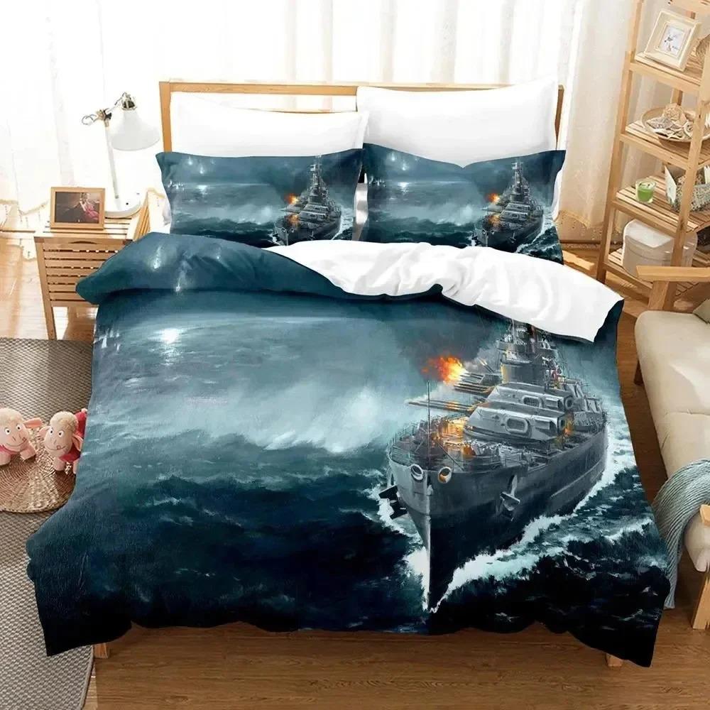 3D-принтер с игрой World of Warships Постельный комплект Пододеяльник Постельный комплект Одеяло Наволочка Одеяло размера king-size Для мальчиков Взрослых EU Single 135x200cm