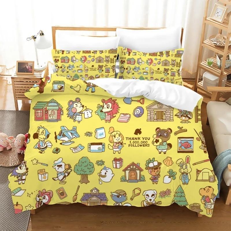 3D-принт с изображением животных из мультфильма Crossing Game Комплект постельного белья с двуспальной кроватью Twin King Пододеяльник Одеяло Наволочка Для мальчиков Девочек Взрослых Спальня 70x133cm 2pcs