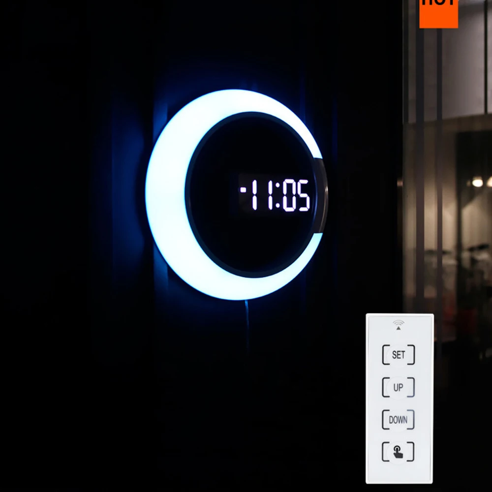 3D светодиодные настенные часы, цифровые настольные часы с будильником, современный дизайн, зеркальная полая температура, ночник для дома, у...
