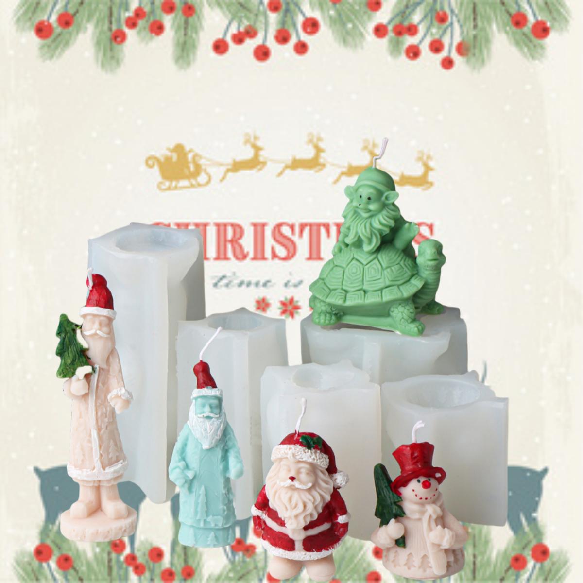 3D стоящая Санта-Клаус силиконовая форма для свечей, ездящая черепаха Санта, литье рождественского подарка, самодельная гипсовая смоляная форма для изготовления