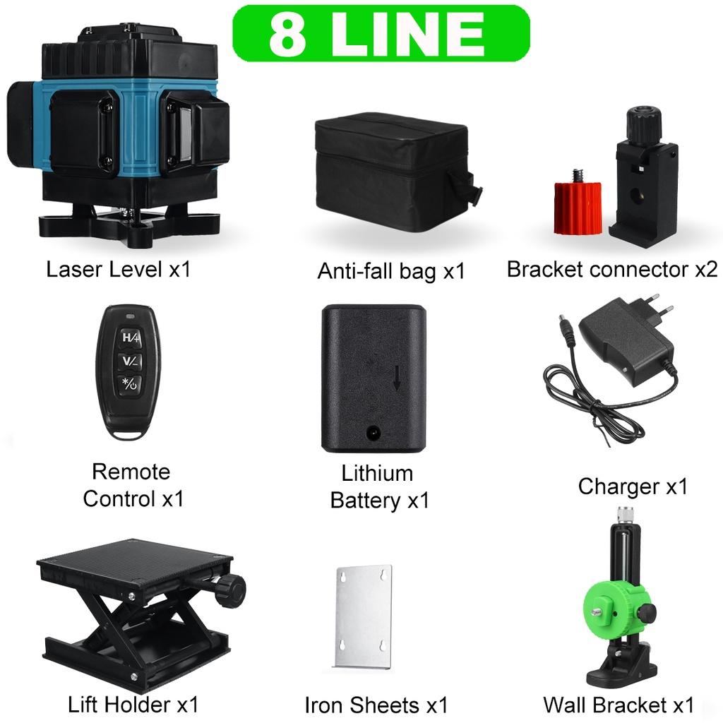 3D/4D 16/12/8 Линий Лазерный Уровень Уровень Самовыравнивающийся 360 Горизонтальный И Вертикальный Крест Супер Мощный Зеленый Лазерный Уровень 8Lines