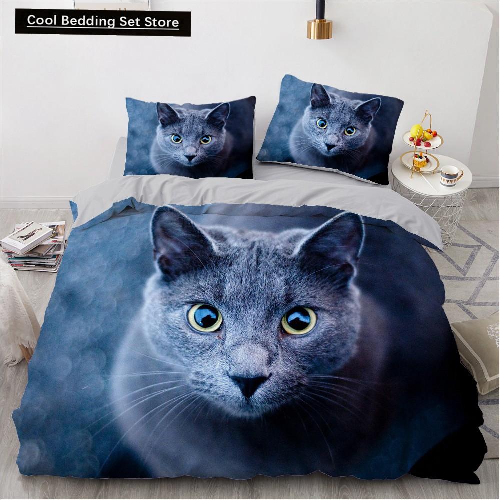 3D Cat King Queen Пододеяльник Прекрасный серый белый комплект постельного белья для котят для детей подростков взрослых шотландская вислоухая мягкая наволочка из 2/3 предметов US King(264x228cm)