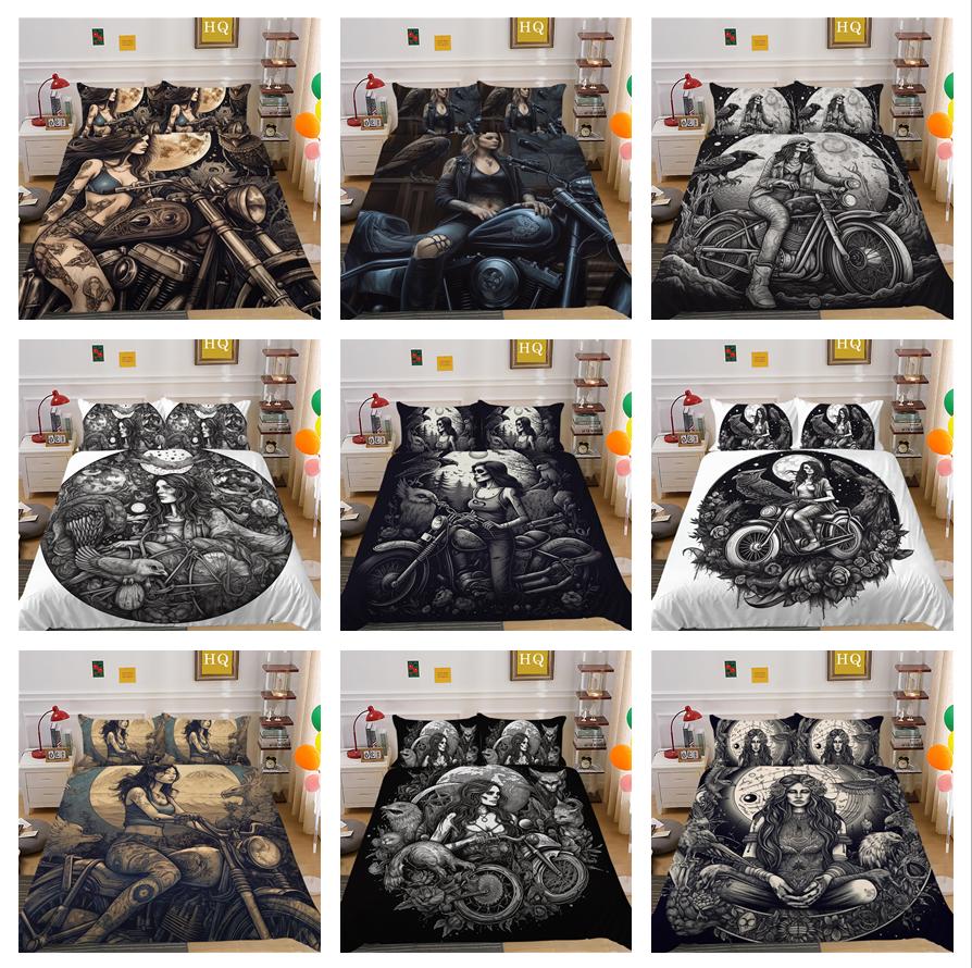 3D Dark Beauty Комплект постельного белья с принтом мотоцикла Красота Череп Голова Пододеяльник 2/3 шт. AU180 * 210 Супер большая кровать Быстросохнущее украшение для комнаты