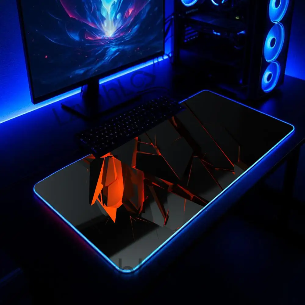3D Geometry Theme Mouse Pad RGB Luminous Mouse Pad Office Computer Accessories PC Keyboard Pad LED Anti-Slip Gaming Desk Pad