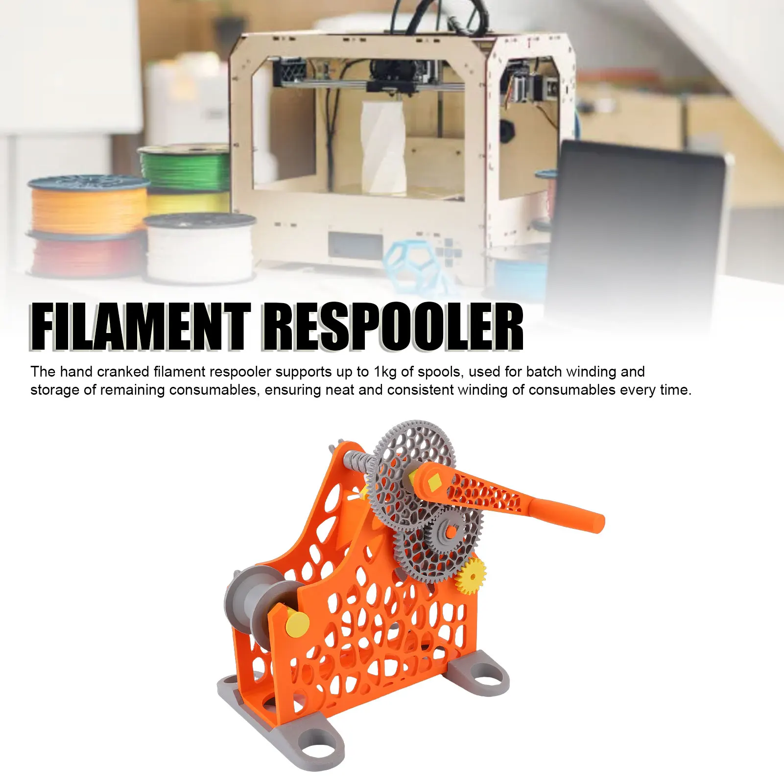 3D Printer Filament Respooler Hand Cranked 1kg Filament Rewinder Detachable Modular Design 3D Printer Spool Rewinder ABS