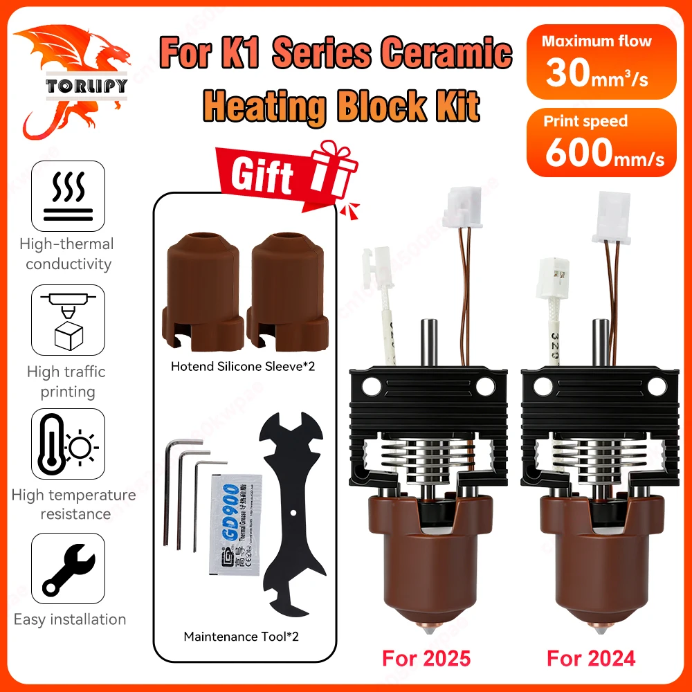 3D Printer Parts for Creality K1/K1C/K1 Max Hotend Kit Quick Swap Ceramic Heating Block Set 0.4mm Hollowed-out Radiator Hot End