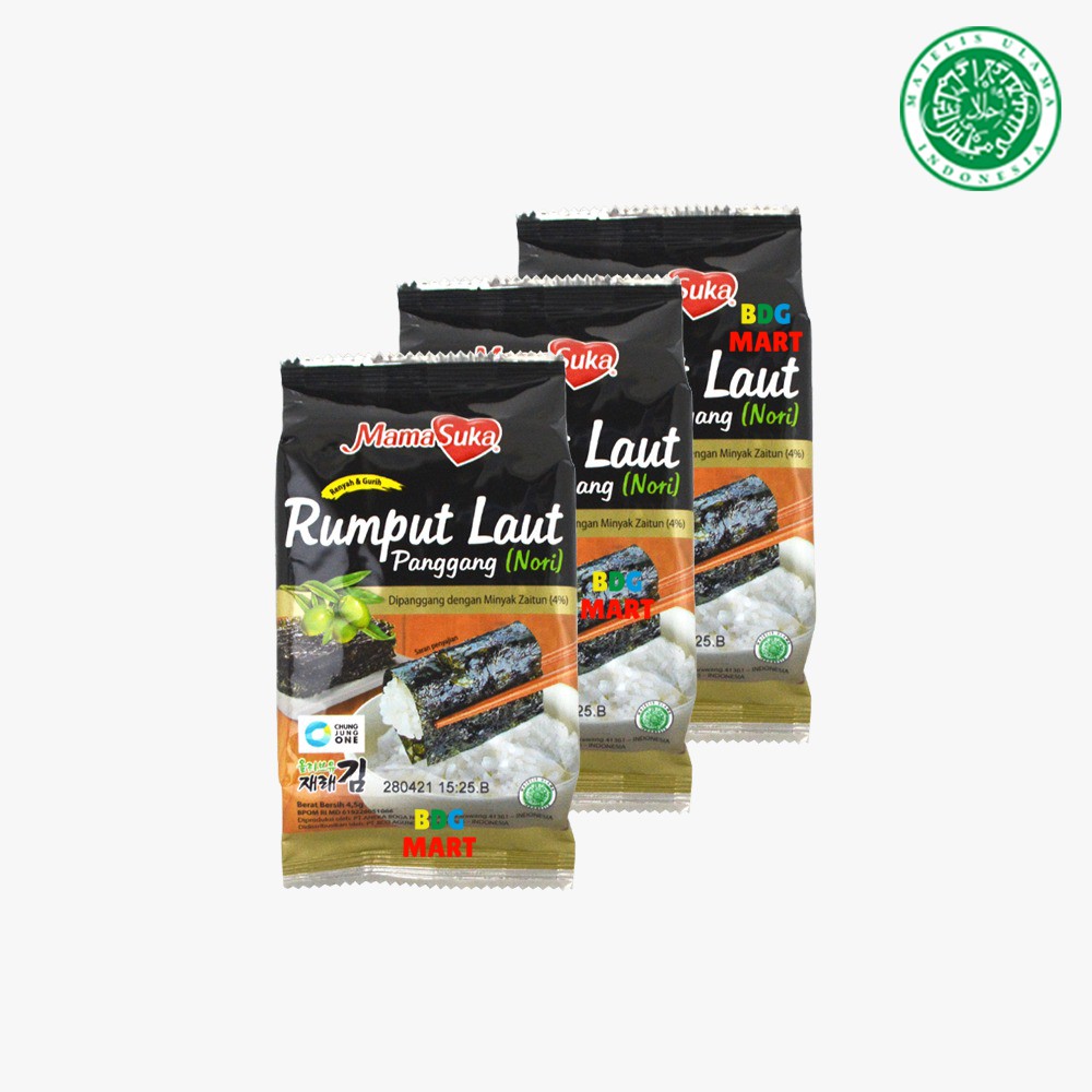 3PCS Mama Suka Rumput Laut Rasa Original Halal MUI - 3pcs x 4.5gr