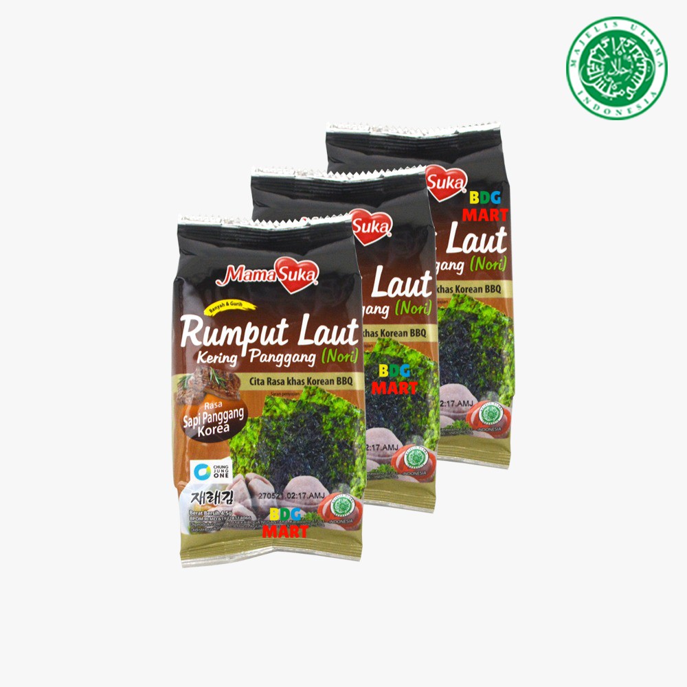 3PCS Mama Suka Rumput Laut Rasa Sapi Panggang Korea Bbq Halal MUI - 3pcs x 4.5gr