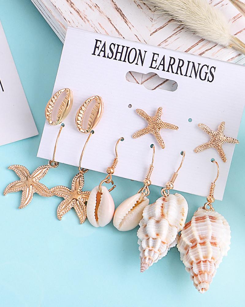 3Pair Clan Star Shell Shaped Drop Earrings, Style1