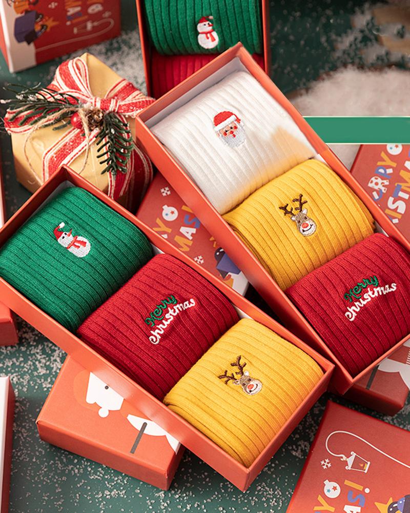 3Pairs Christmas Snowflake Letter Elk Pattern Socks Set, Style1
