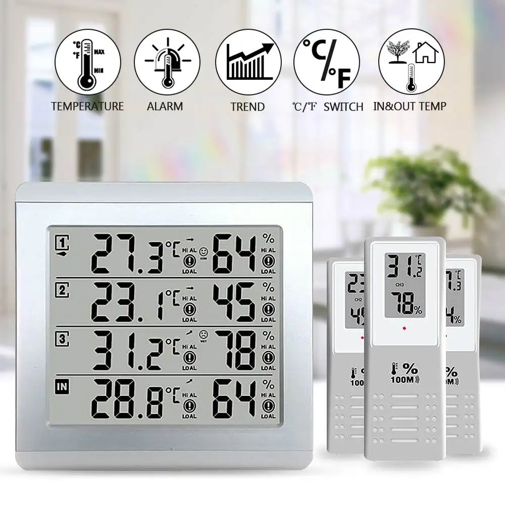 3Pcs C/F Max Min Value Display Alarm Temperature Meter Weather Station tester +1Pcs Wireless LCD Digital Thermometer