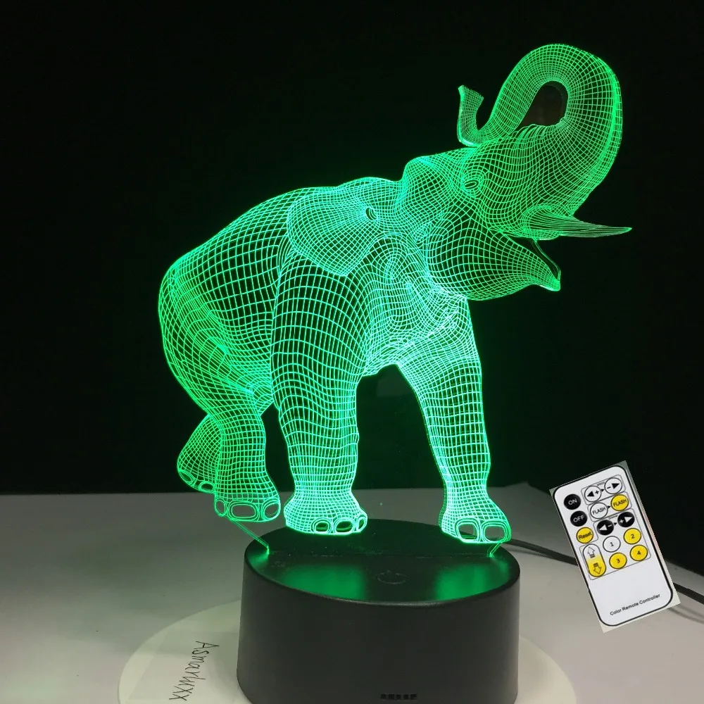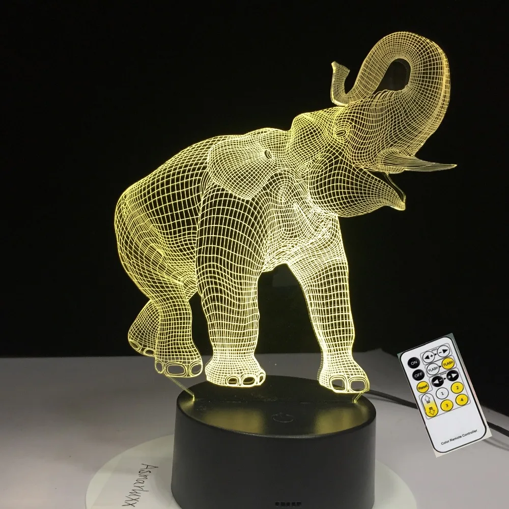 3d-лампа в виде счастливого слона с вращающимся носом, 7 цветов, USB-ночник, светодиодные лампы для детей, подарок на день рождения, USB-пульт дистанционного управления, Прямая поставка