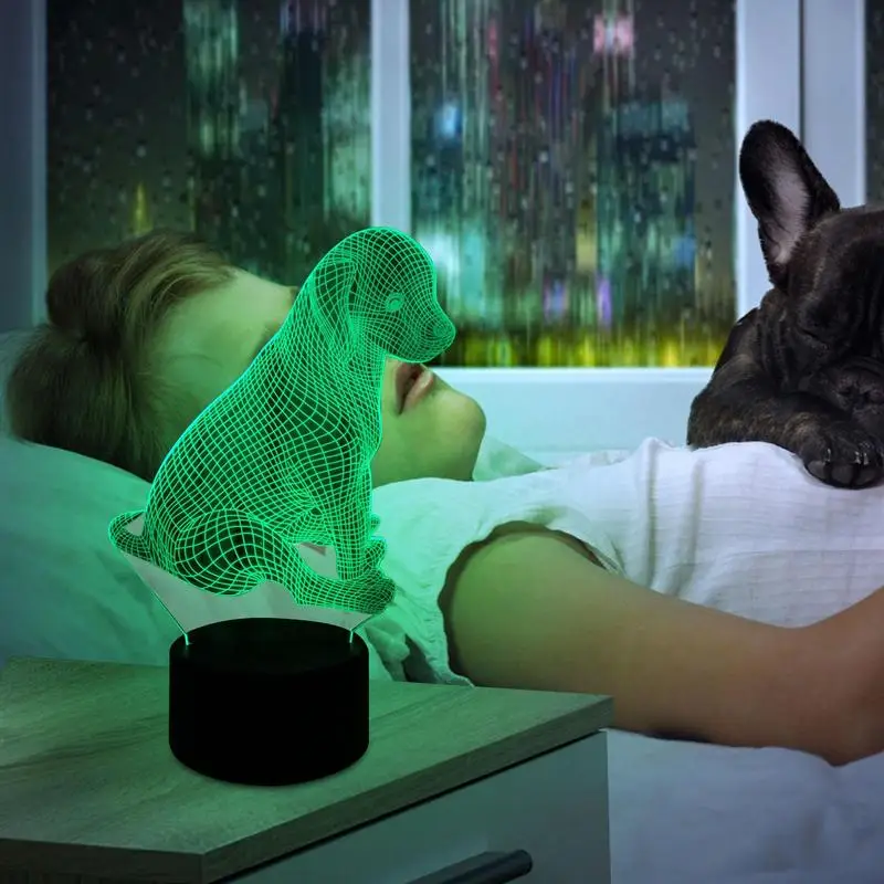 3d-лампа, иллюзия, собака, пульт дистанционного управления, сенсорная Ночная лампа, Портативная USB-зарядка, лампа с базой для девочек и мальчиков, семь цветов