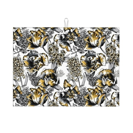 Large Dish Drying Mats for Kitchen Counter - Tulips Flowers Gold 18x24In Anti-Slip Absorbent Microfiber Drying Mat for Kitchen Counter Mat Dish Rack Mat with Hanging Loop