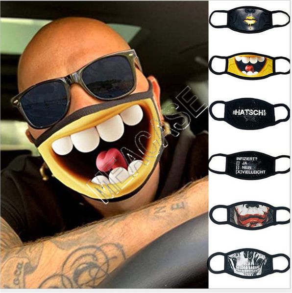 3d смешные маска модные экспрессия половина лица маски дизайнер мультфильм pattern mask мода хлопок маски моющийся многоразовый велоспорт ма, Blue