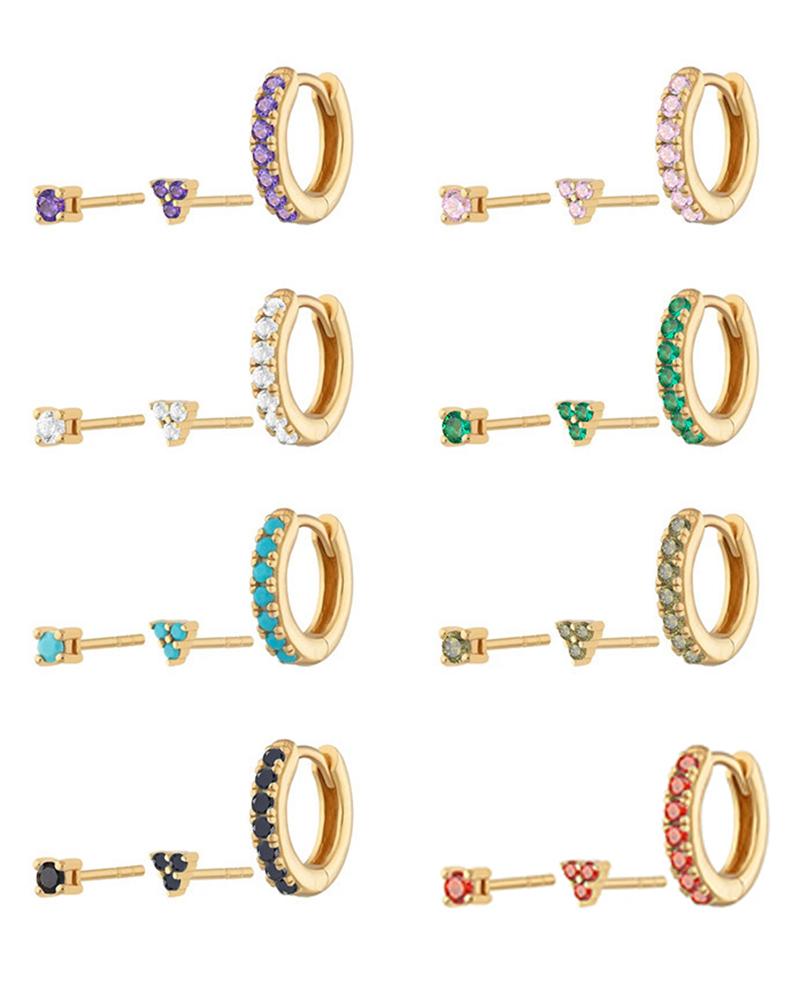 3pcs Minimalist Rhinestone Stud Earrings & Cartilage Clip Set, Purple