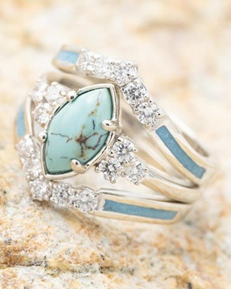3pcs Stackable Turquoise Rhinestone Rings Set, Silver