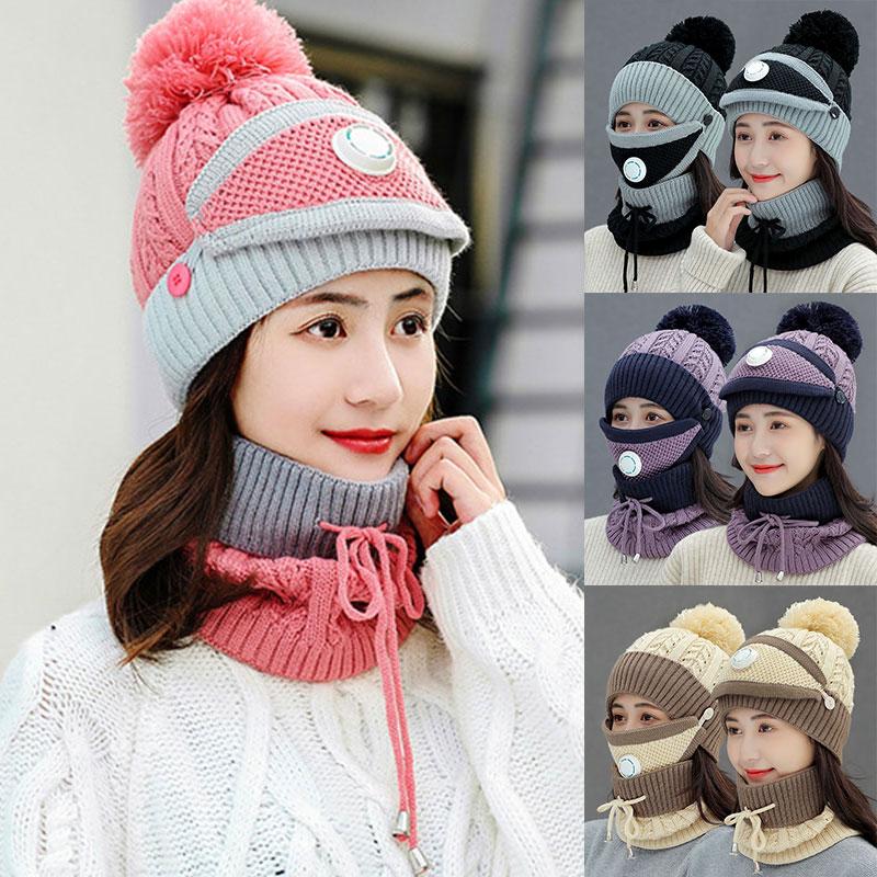 3x женская шапка-бини с помпоном, шарф и шею, комплект, вязаная зимняя теплая снежная лыжная шапка