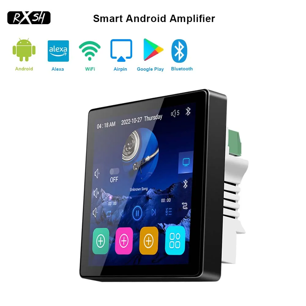 4'' WiFi Amplifier Bluetooth-compatible Smart Home Music System Android 10.0 Touch Screen Wall Panel Support Voice Control RJ45