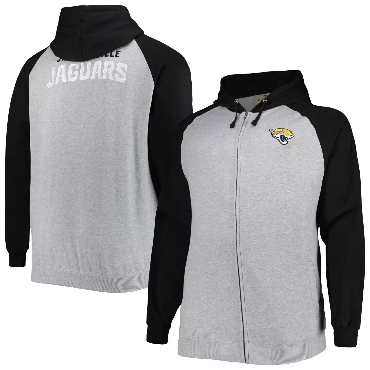 Мужская куртка с капюшоном Fanatics из флиса реглан во всю длину с молнией во всю длину и длиной до щиколотки с логотипом Heather Grey Jacksonville Jaguars, Серый, Мужская куртка с капюшоном Fanatics из флиса реглан во всю длину с молнией во всю длину и д