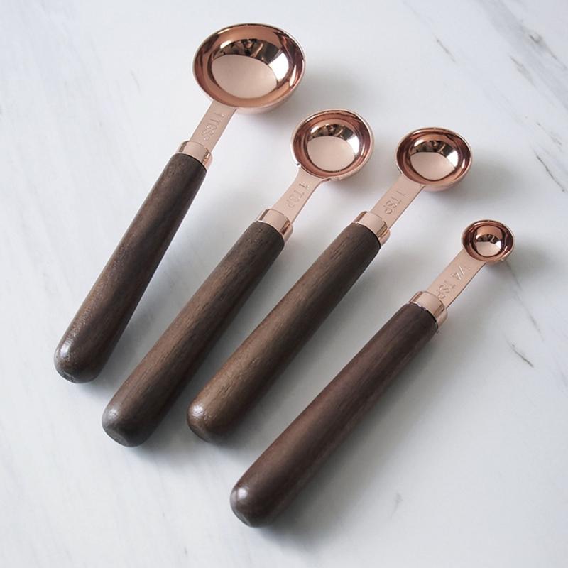 4шт/набор бытовых кухонных инструментов для выпечки, деревянная ручка, медное покрытие, мерные ложки
