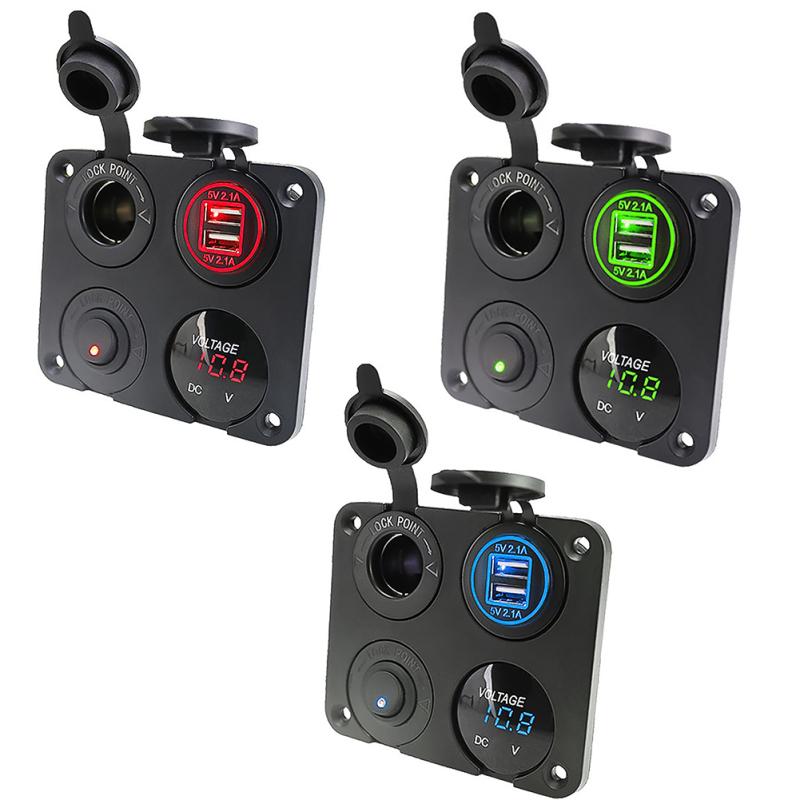 4 в 1 автомобильное зарядное устройство, панель, яхта, модифицированное двойное зарядное устройство USB, переключатель вольтметра прикуривателя для морской лодки
