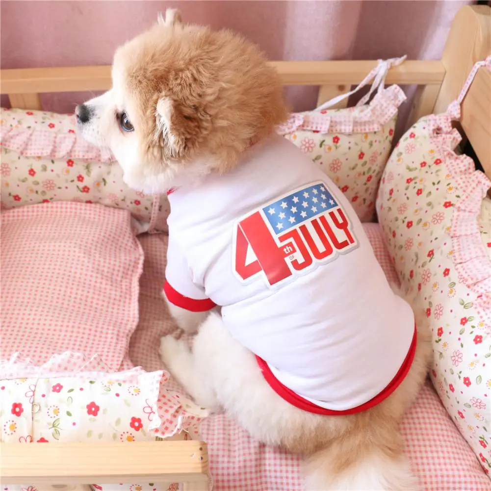 4 июля, мягкая хлопковая футболка для собак, наряд с коротким рукавом для щенков, летняя футболка для собак, Симпатичный жилет для щенков, фут...