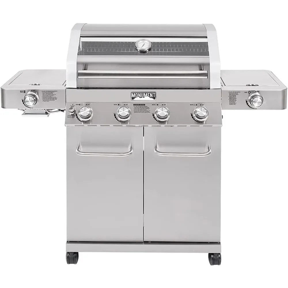 4-конфорочная пропановая газовая решетка из нержавеющей стали в стиле шкафа с прозрачной крышкой, Фотоэлементы управления, встроенный термометр