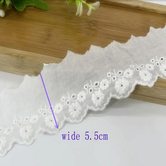 4 метра/лот, ширина 5,5 см, хлопковая ткань, кружевная ткань, кружевная ткань с цветочной вышивкой, отделка платья, костюм для девочек, материал с бантом 4 Meters белый