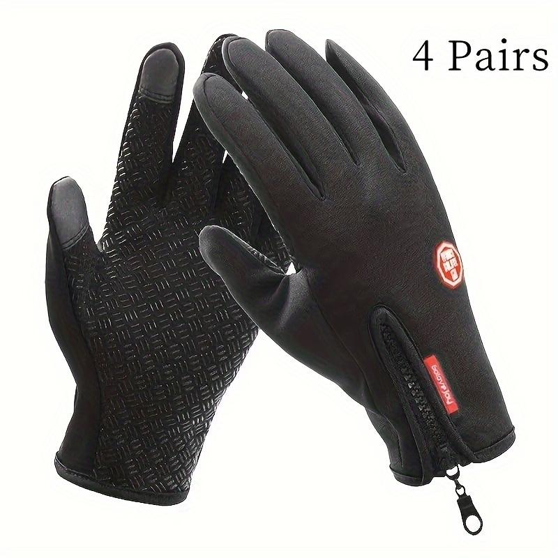 4 пары ветронепроницаемых перчаток, совместимых с сенсорным экраном — водонепроницаемые, теплые, нескользящие, подходят для езды на мотоцикле, сохраняют руки в тепле и сухости, 4 Pairs чёрный