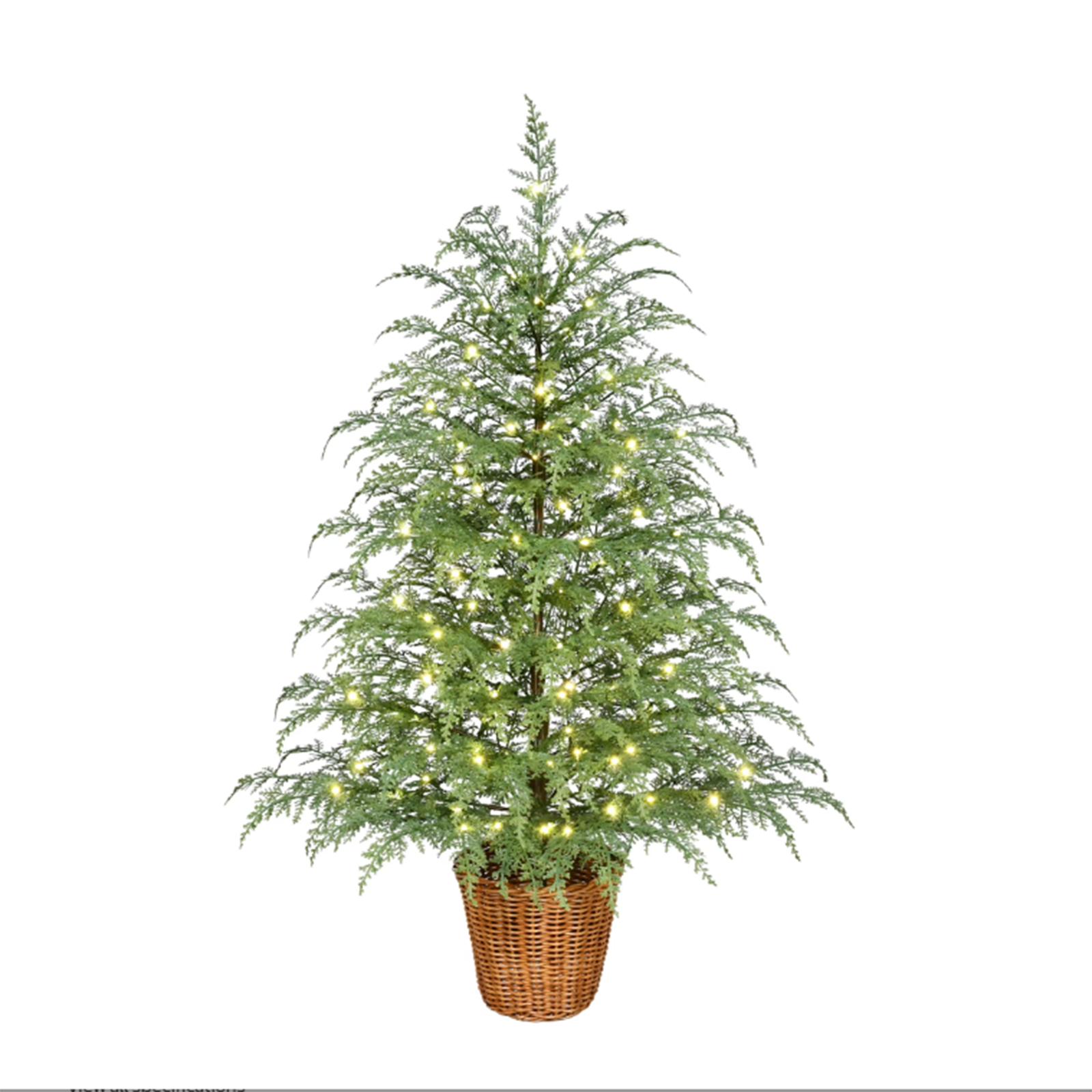 4-футовая предварительно освещенная зеленая искусственная рождественская елка в горшке со 100 теплыми светодиодными огнями One Size белый