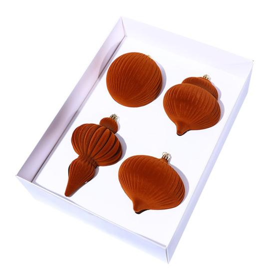 4 шт. Бархатные елочные шары Пластиковый флокированный декор с металлическими подвесками Праздничные украшения для дома для елки каминной полки бронзовый