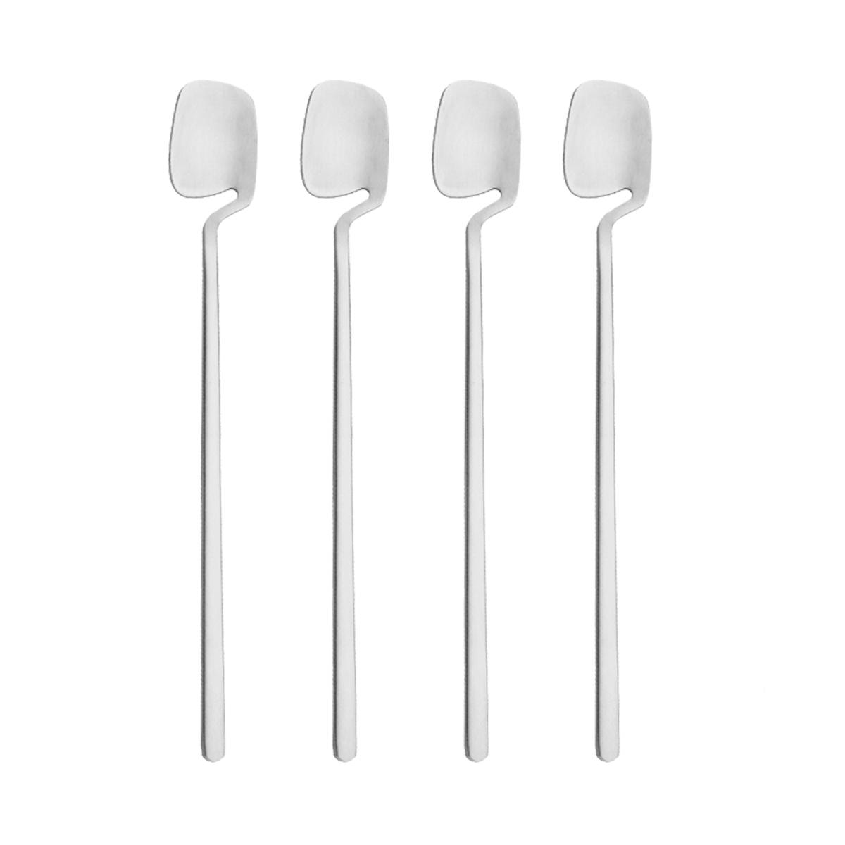 4 шт. Золотая ложка для перемешивания кофе, чая, длинной ручкой, десертная ложка для мороженого, экологически чистая посуда из нержавеющей стали 304, кухонная посуда серебряный