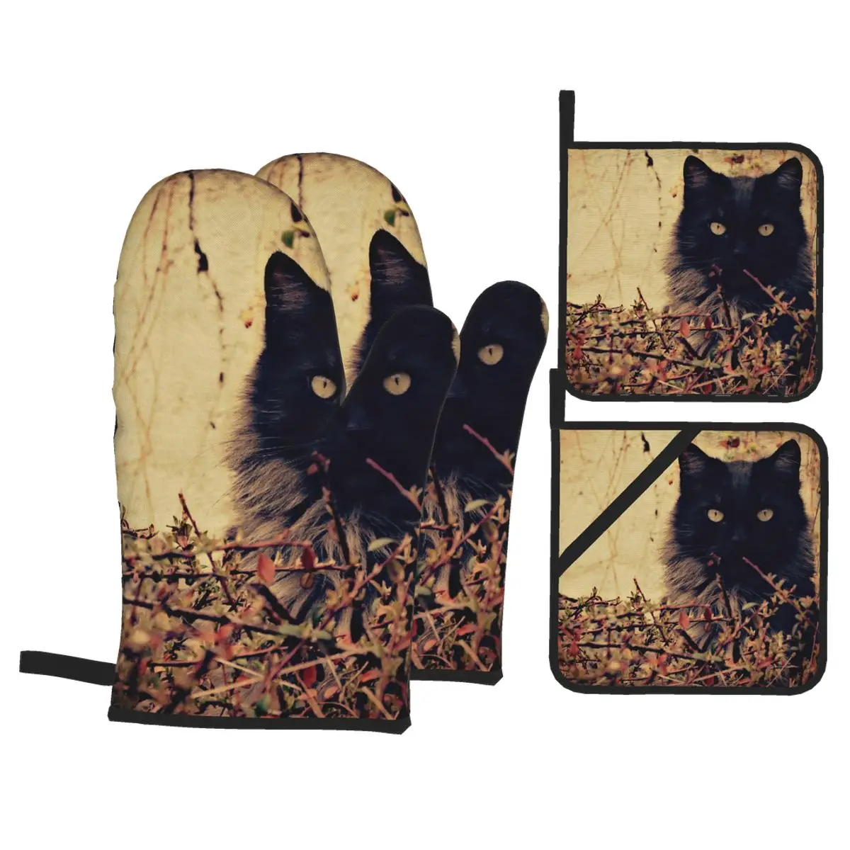 4 шт. Кухня перчатки изоляционная подушка в виде черного кота в Винтаж стены Пособия по кулинарии микроволновая печь перчатки для работы с г...
