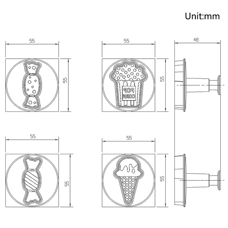 4 шт. Формочки Для Мороженого, печенья с поршнем, набор штампов, форма в форме попкорна, конфет, праздничный декор для глазури, печенье, тортов...