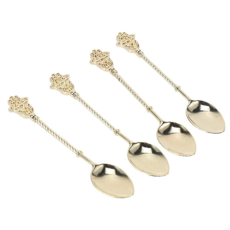 4 шт./винтажная Золотая ложка, сплав, кофейный мороженое, десертные ложки, Королевский стиль, ретро-Стик, кофейные чайные ложки, кухонные инструменты