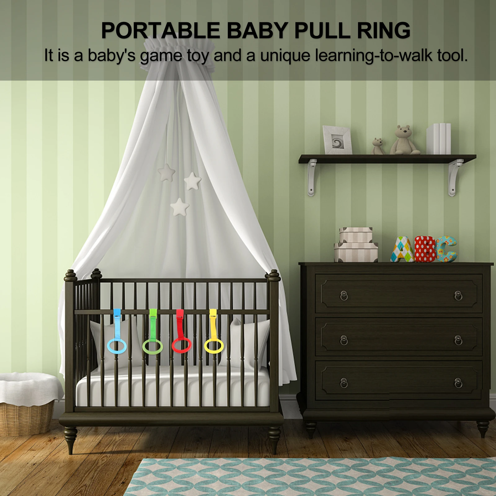 4 шт., детская обучающая стоячая кроватка, подвесное кольцо для ручной тяги для малышей, прочная безопасная тренировочная ручка для младенцев, эргономичный дизайн