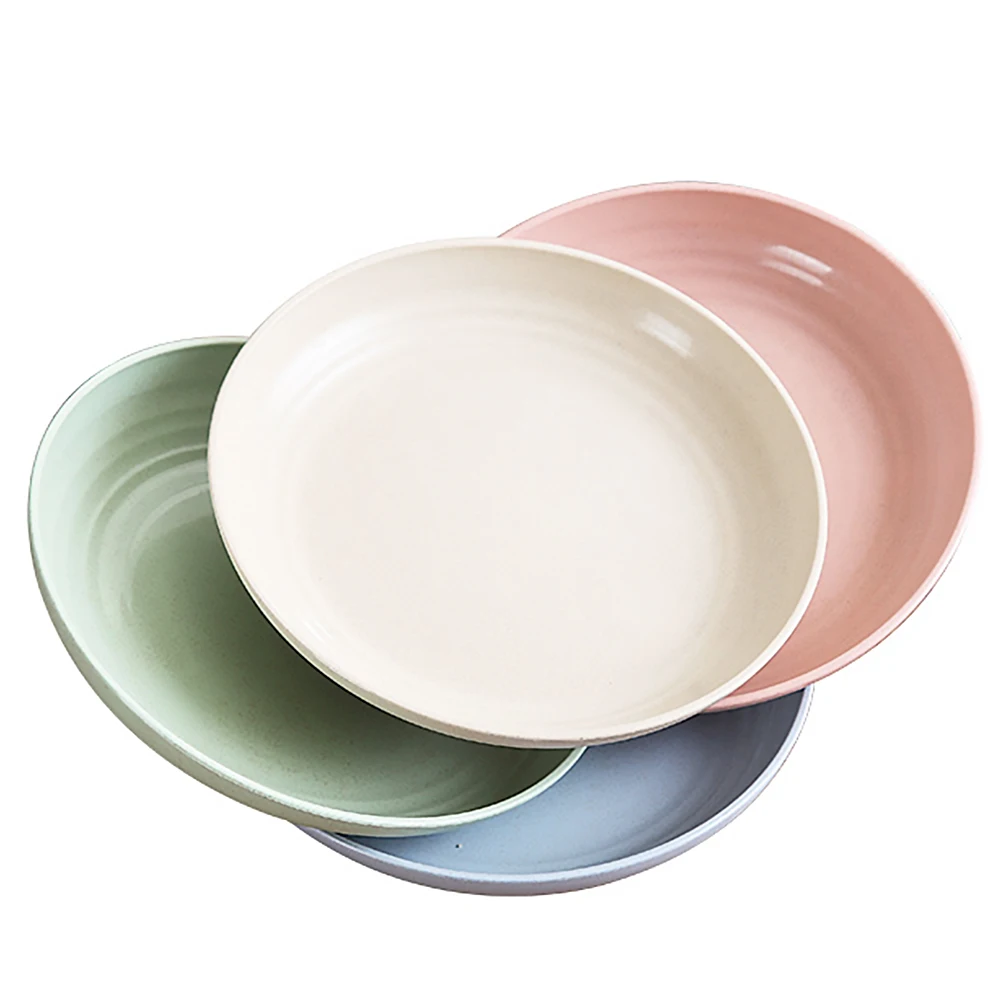 4 шт., детская стеклянная соломенная тарелка, однотонная тарелка, фруктовые блюда, посуда, костяная тарелка, Экологически чистая, небьющаяся