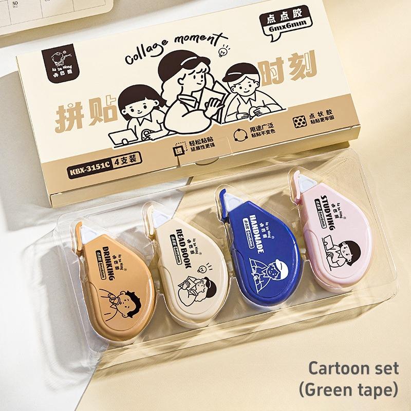 4 шт. клейкая лента с точками в виде мультяшного дизайна, мини-портативная, безопасная для использования, двухсторонняя клейкая лента для альбома, дневника, школы