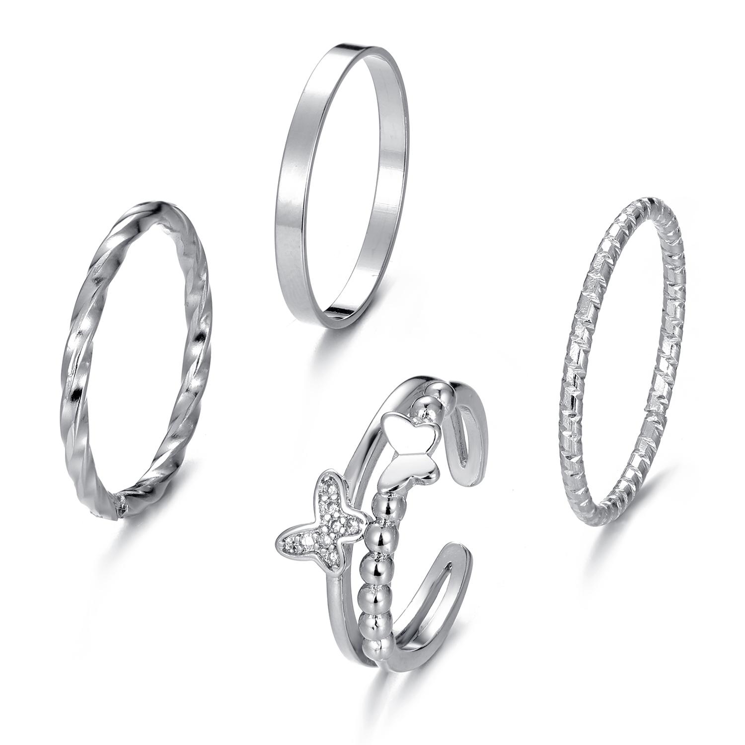 4 шт., кольцо в стиле хип-хоп, индивидуальное кольцо для пары, широкое отверстие для лица, женское кольцо, кольцо на указательный палец, набор колец с пряжкой-цепочкой серебряный