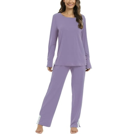 Valcatch Women s Pajama Set Soft Long Sleeve Top and Pants Solid Color Casual Loungewear Set
