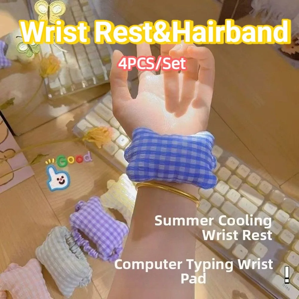 4 шт./компл., эргономичная подставка для запястья мыши, милая клетчатая подушка для клавиатуры, эластичная лента, удобная подушка для поддержки запястья для стола