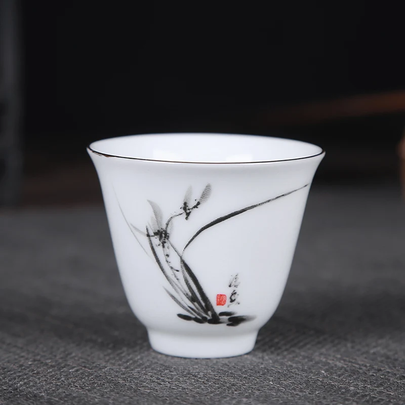 4 шт./лот китайская керамическая чайная чашка ручная роспись белая фарфоровая чайная чашка бутик чайная чашка ручной работы чайный набор ак...